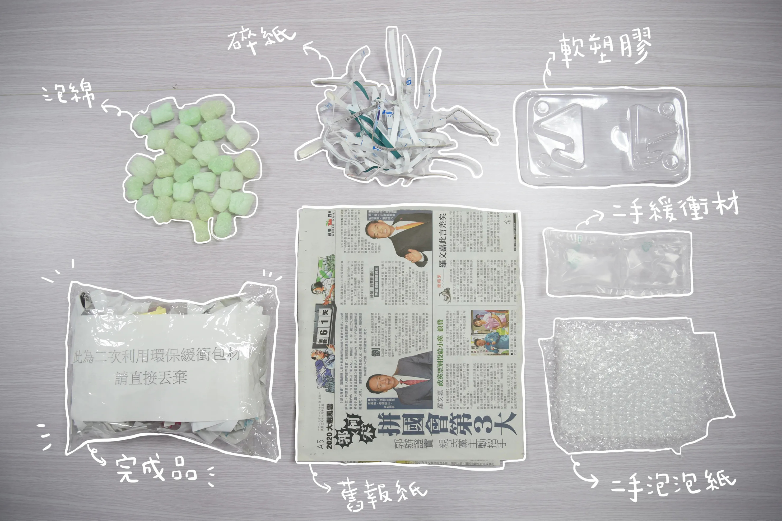 在出貨的包裝上,魔女柑仔店不想過度包裝,店裡包材大部分為二次使用的包材,魔女會到各賣場及親友蒐集各種待回收紙品或輕塑膠材作為安全填充、也會尋找二手但乾淨的紙箱作為外包裝材,有一雖然些看起來不美觀且很像垃圾,但魔女會努力挑選乾淨的紙材去做防撞緩衝材料。